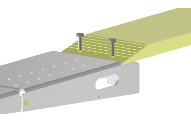 Die Vorbereitung inklusive Absteckbolzen an den Power Ramps ist bei Lieferung bereits vorhanden. Die benötigten Löcher in den Anhängerrampen müssen mit dem mitgelieferten Bohrer selbst gebohrt werden. |